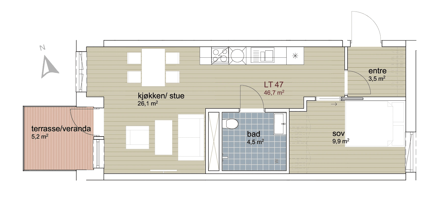 2-roms leiligheten har ekstra god takhøyde. Kontakt megler for mer informasjon.