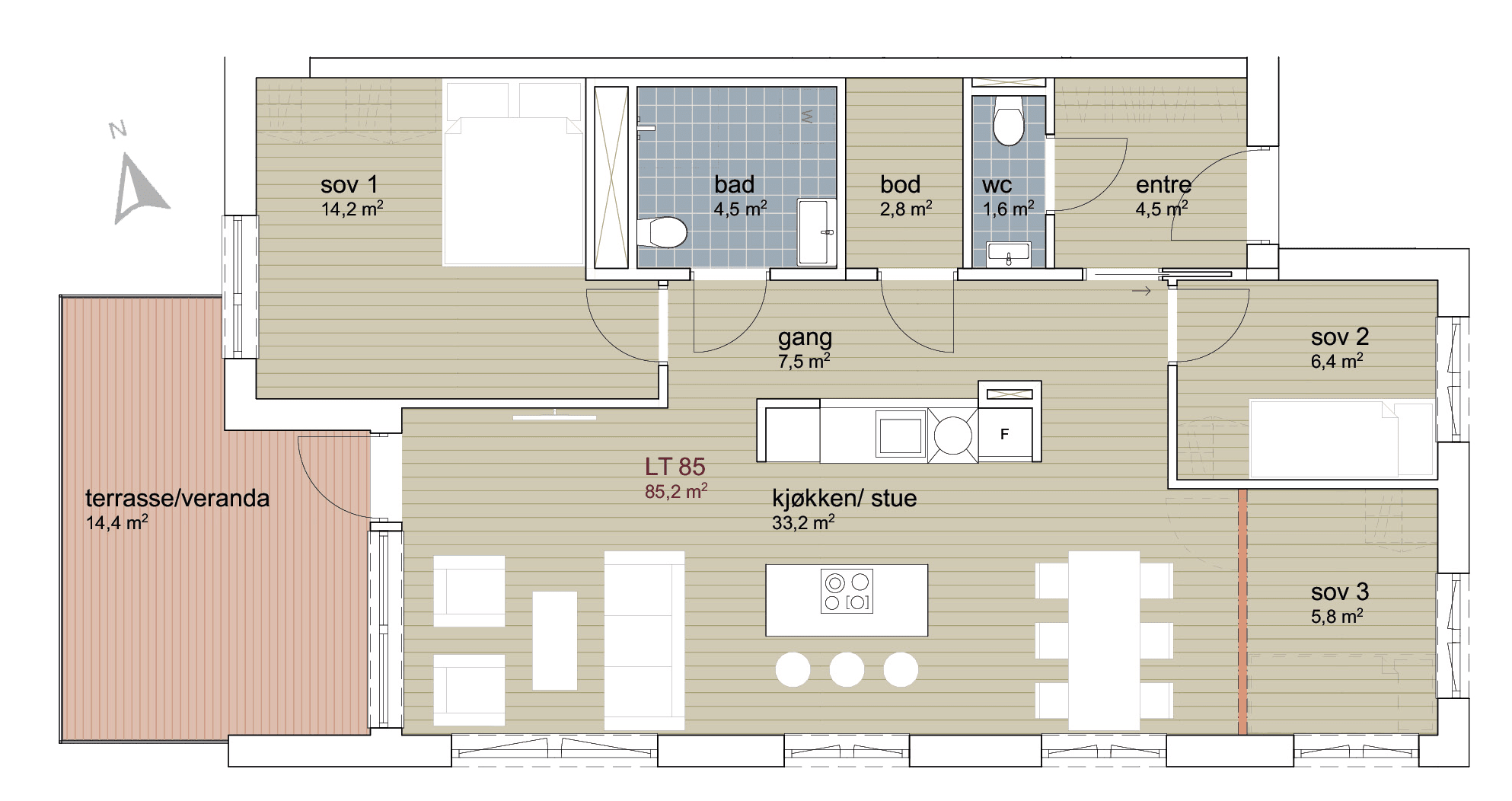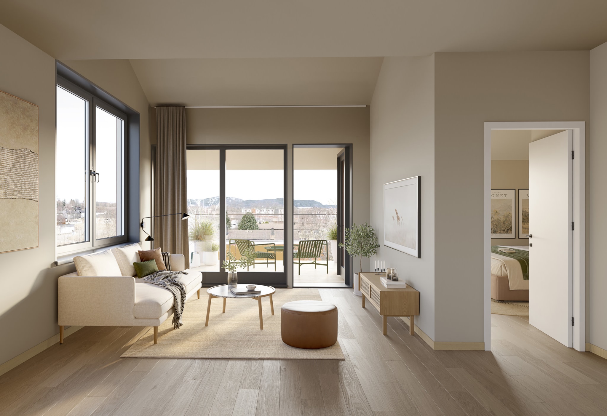 3(4)-roms leiligheten har ekstra god takhøyde i stuen/kjøkken. Fra 2,8 til 4,3 meter. Ta kontakt med megler for mer info.
